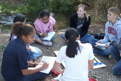 students from Almaden are taking notes as they learn about our local watershed.