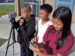 In January, Zanker fifth graders chose roles from the following video production jobs: Actor or actress, director/producer, camera operator, and storyboard artist. Students were given instruction and practice in performing the work required of their particular roles. The entire class in general, and the camer operators in particular, learned basic video camera functions, as well as different kinds of shots and angles used when filming. The teacher showed various student-created PSAs, downloaded from the Web. The class, with the teacher's guidance, critiqued each of the PSAs, in order to recognize the kinds of shots and angles used to film them, as well as the tecniques used to communicate the message. The PSAs were evaluated, to determine what works and what does not work in creating a quality public service announcement.